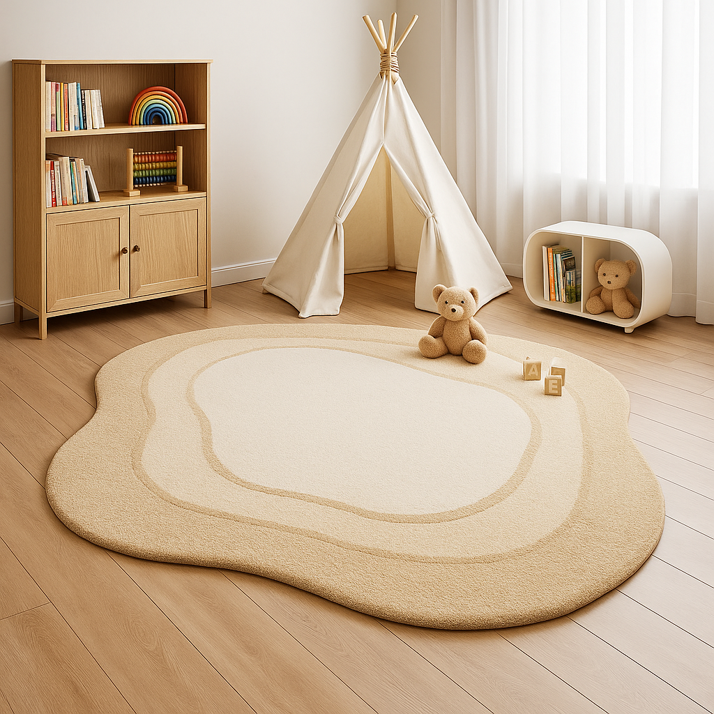 Soft ivory and sand tones flow in rounded bands, giving this piece a calm, sculptural look. The imitation-cashmere pile feels smooth underfoot, while the Persian-inspired print adds gentle dimension without clutter. Waterproof, fade-resistant, and non-slip, it delivers an easy, polished finish for contemporary spaces.