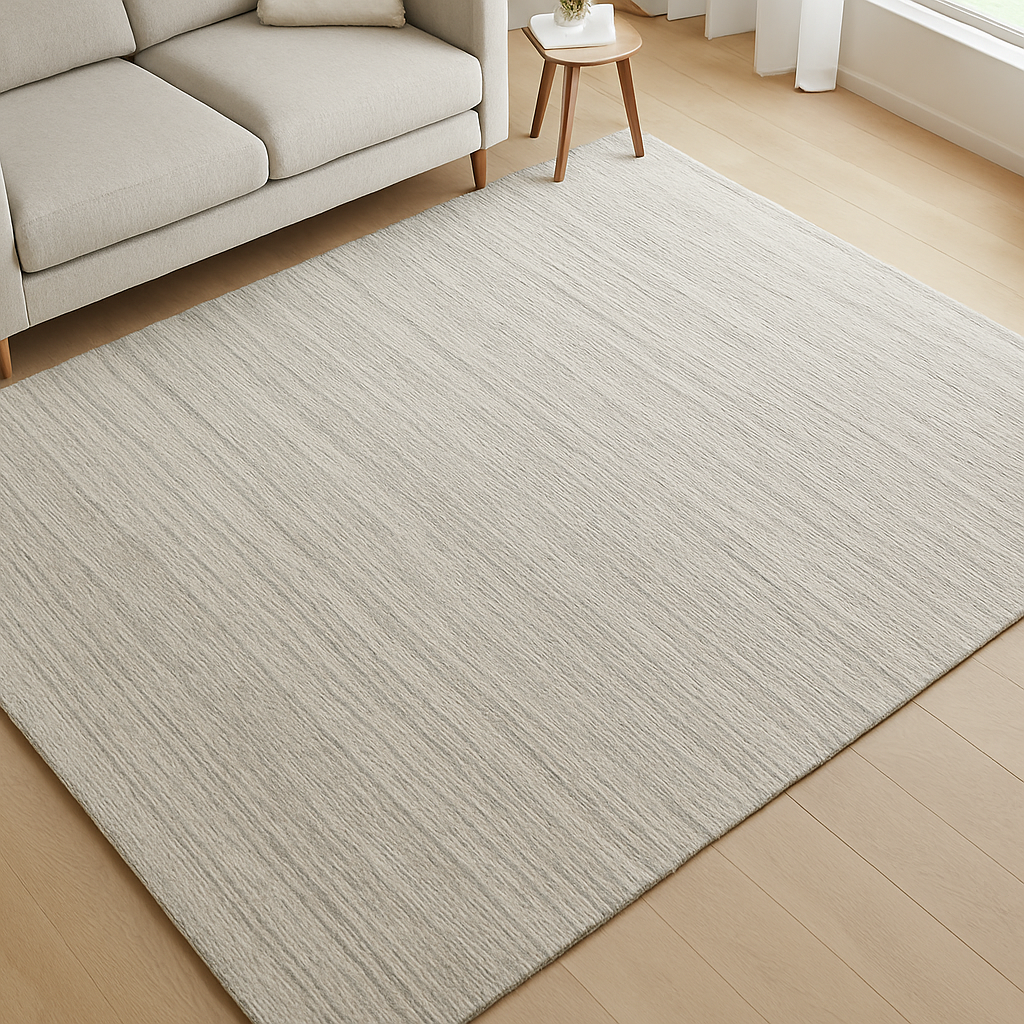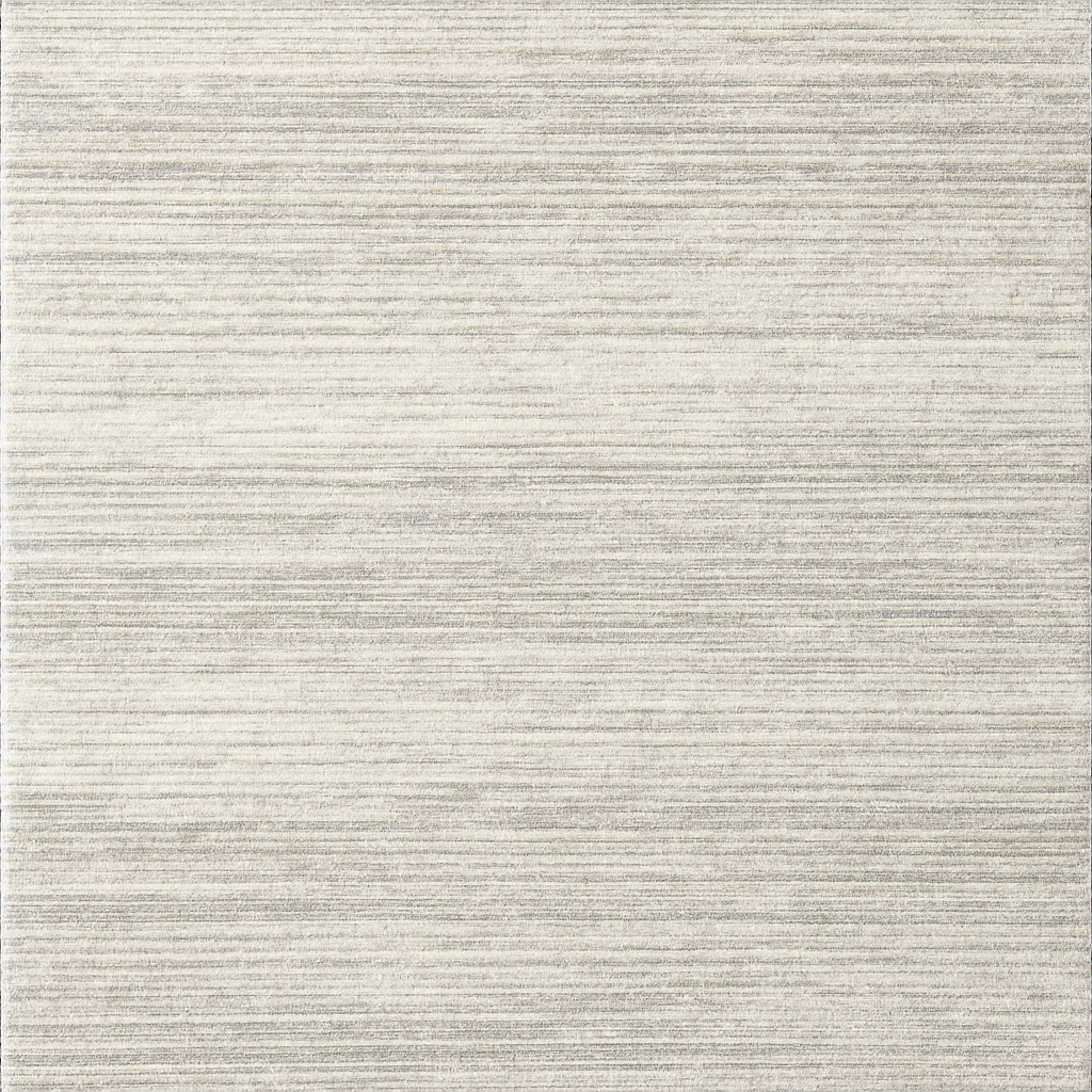 Tonal striations in pearl and soft grey drift across a calm, minimalist field - an effortless neutral that brightens any room. Precision-loomed from 100% pure wool for a smooth hand, enduring resilience, and modern refinement.